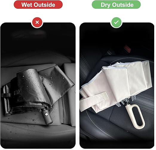- New Reverse Folding Design: The newest reverse travel umbrella features an inverted design from the inside out unlike ordinary automatic umbrellas. When closed, it keeps the wet outer surface inside so that it won’t get wet on your clothes, floor, or car seat, bringing great convenience for your daily commute and getting in and out of the car.