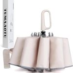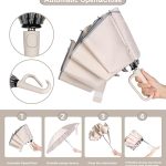 - New Reverse Folding Design: The newest reverse travel umbrella features an inverted design from the inside out unlike ordinary automatic umbrellas. When closed, it keeps the wet outer surface inside so that it won’t get wet on your clothes, floor, or car seat, bringing great convenience for your daily commute and getting in and out of the car.