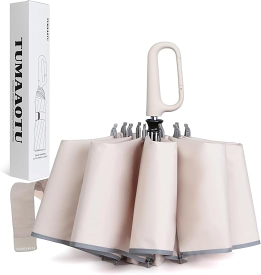 - Novel Carabiner Clip Handle: Allows you to clip your strong umbrella to a large variety of places, Backpack, Purse, Luggage, Handbag, Belt Loop, Golf Bag, Stroller, Bicycle, etc which can assist to keep you from losing or misplacing your umbrella!